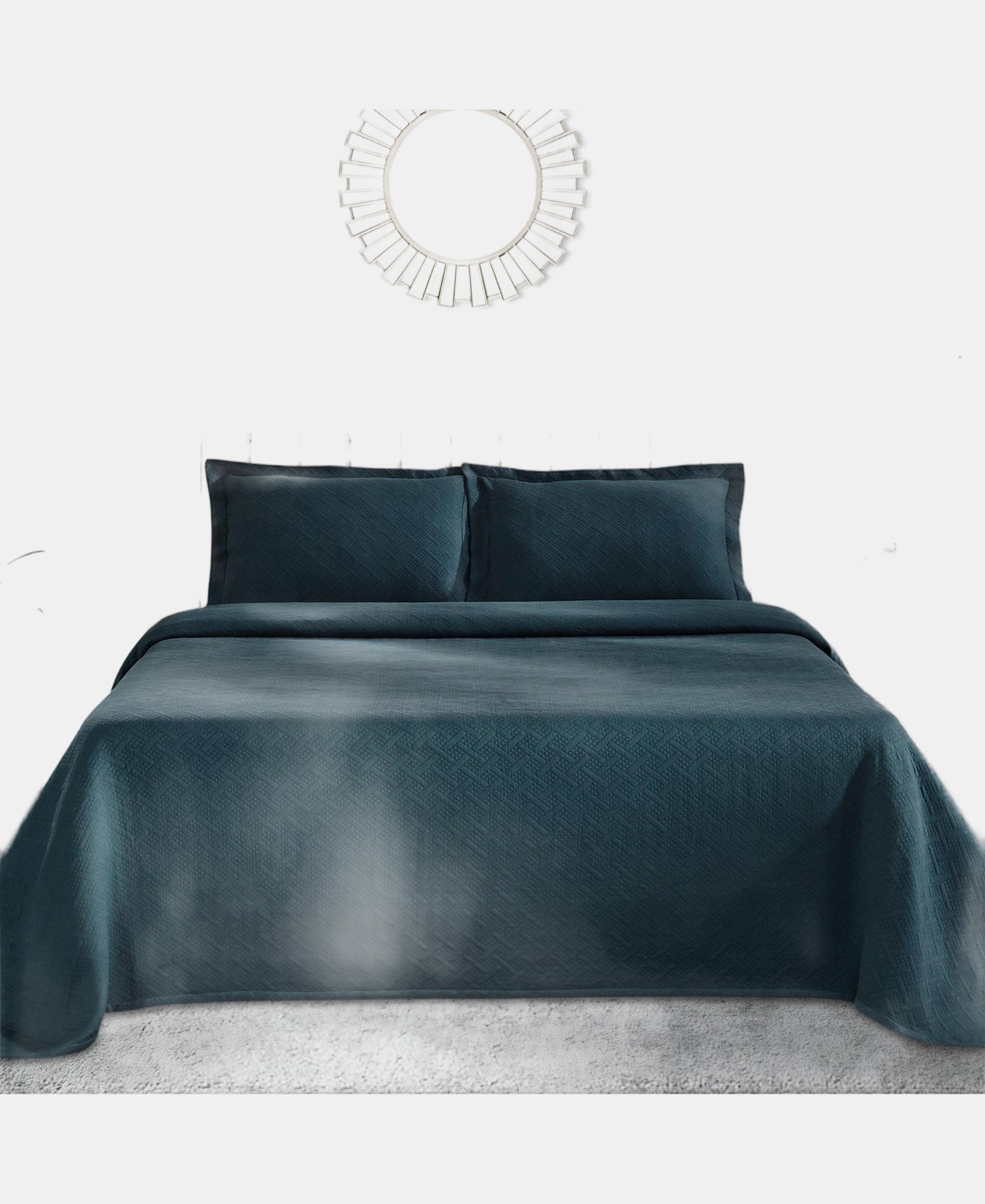 100% Cotton Basketweave Matelasse All-Season 2-Piece Coverlet Set, Twin – Blue