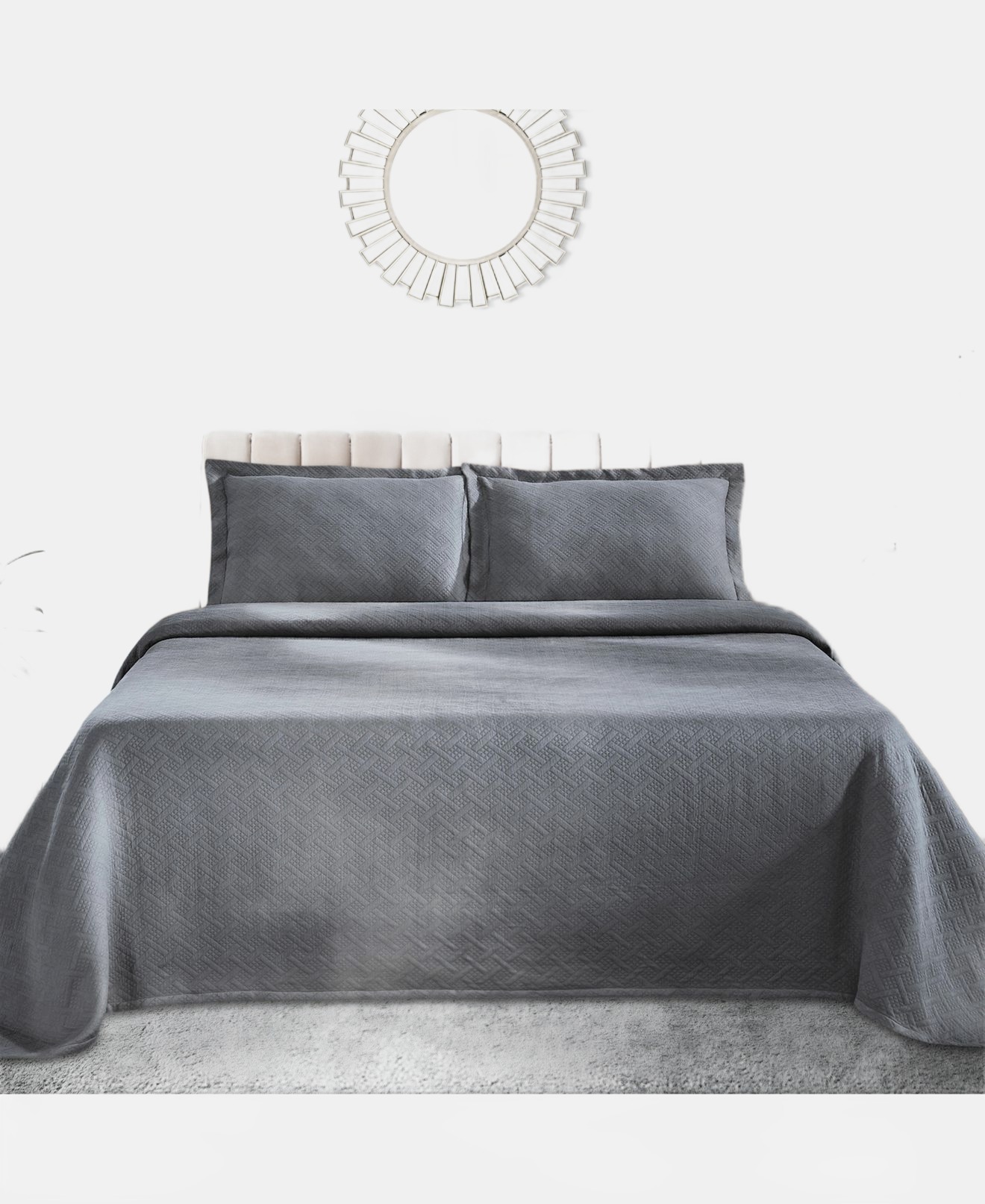 100% Cotton Basketweave Matelasse All-Season 2-Piece Coverlet Set, Twin – Gray