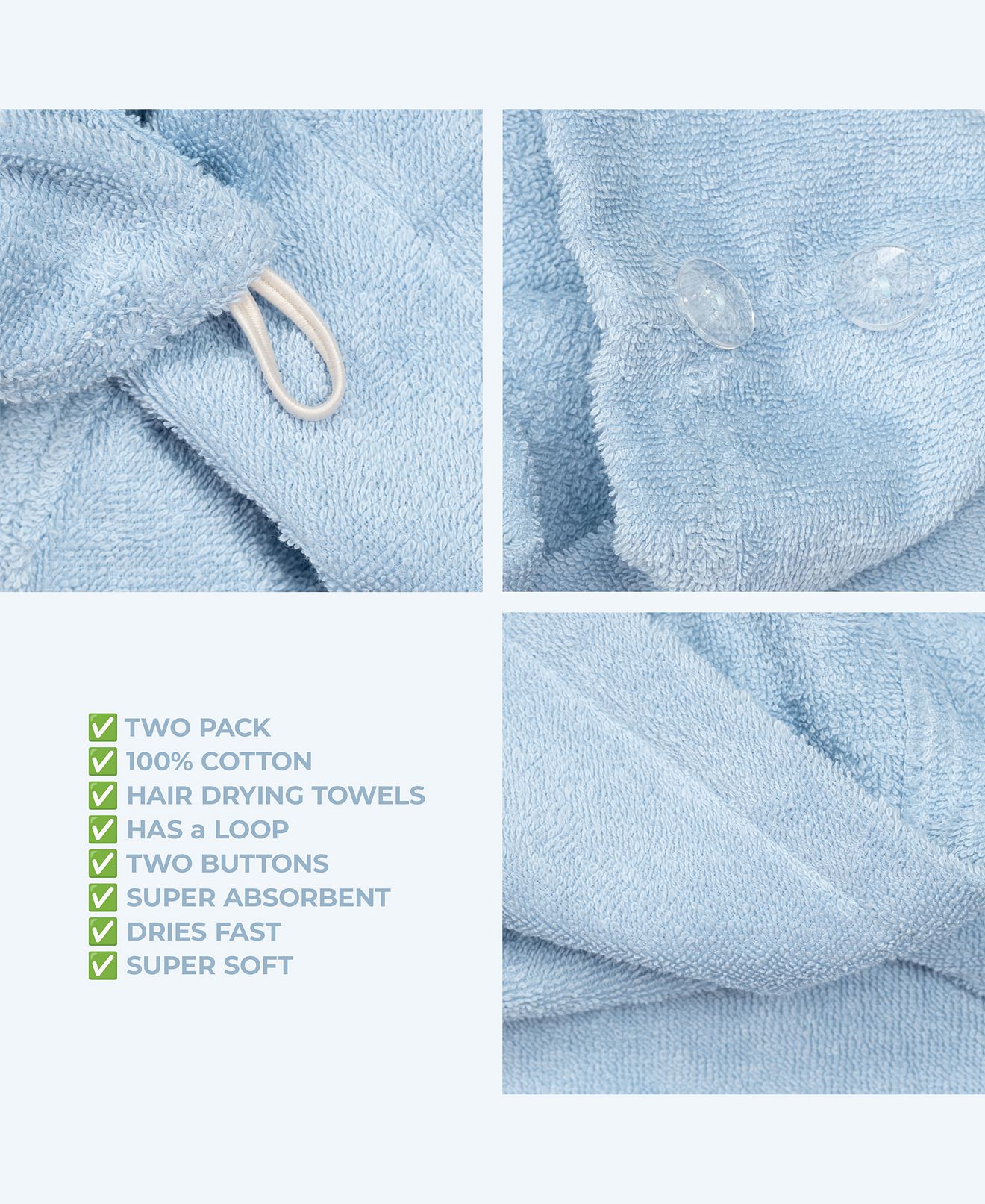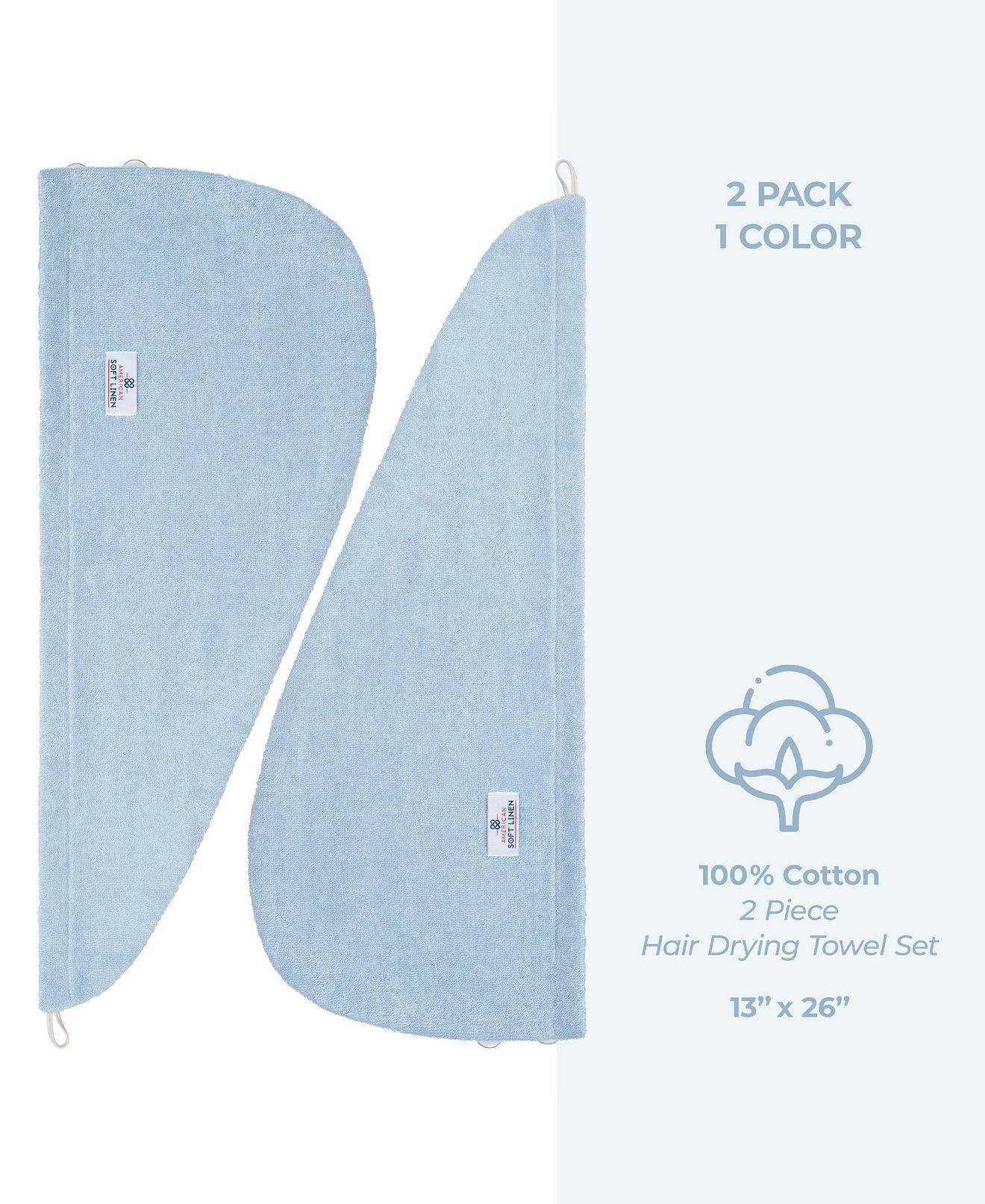 2-Pack Hair Drying Towels, 26″ x 13″ – Sky Blue