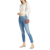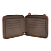 Zip-around closure. Gunmetal-tone hardware. Eight inside card slots.
