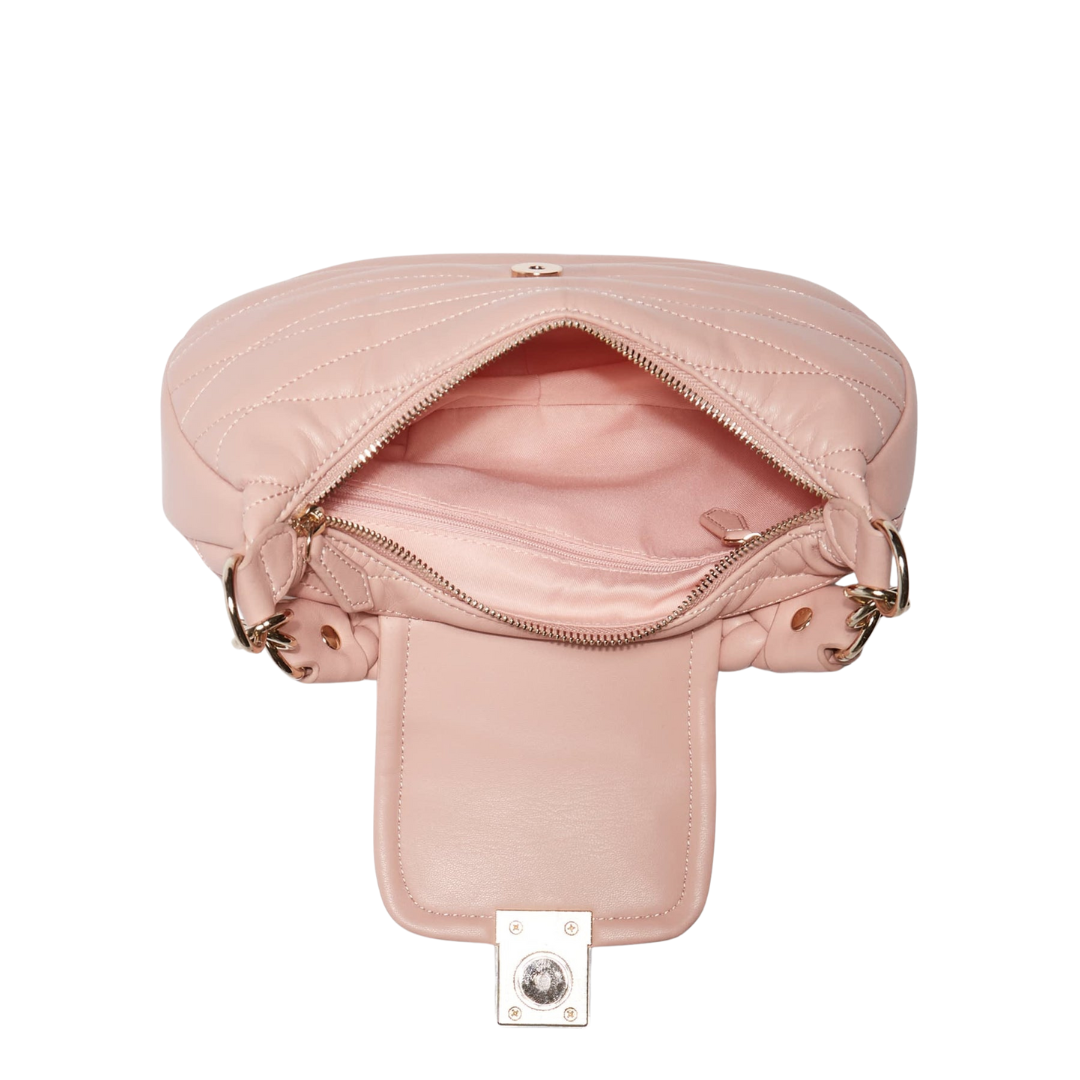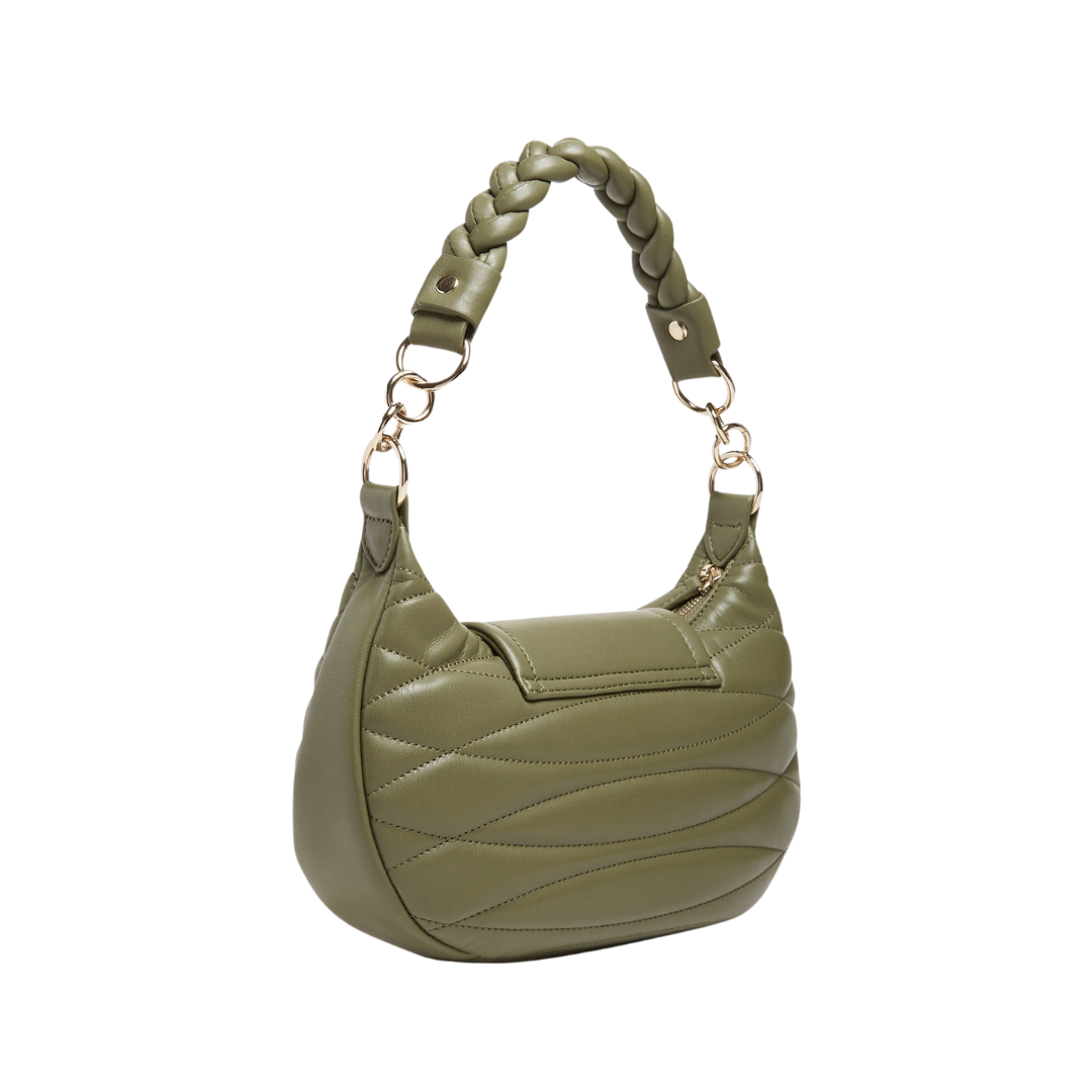 Quilted faux-leather shoulder bag. Curved silhouette. Single-compartment construction.