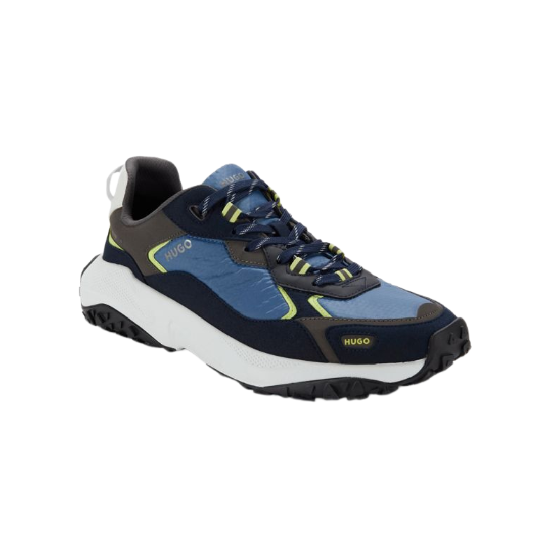 These colorblock sneakers feature a round toe and are constructed with a leather and synthetic upper.
