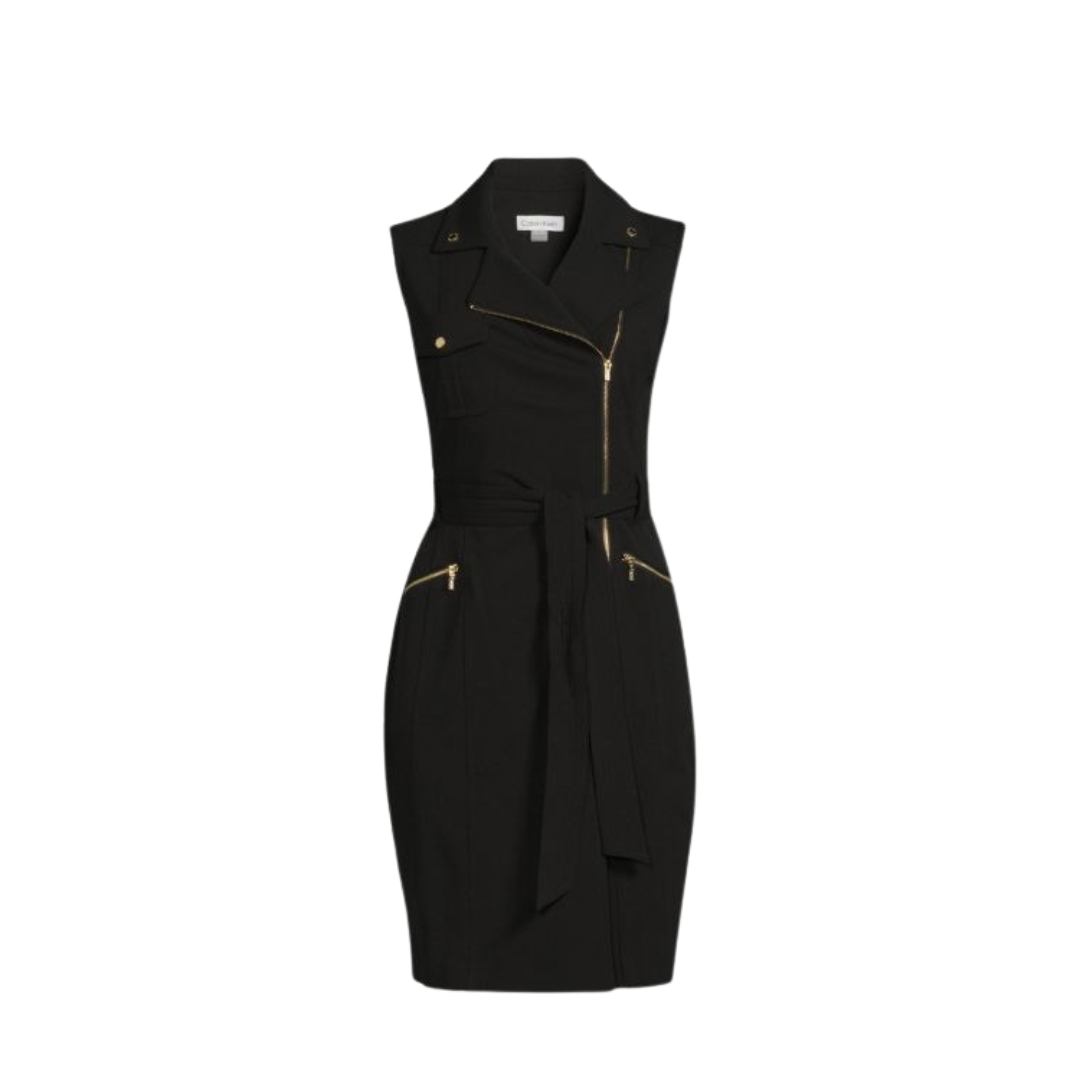 CALVIN KLEIN Belted Notch Collar Sheath Mini Dress