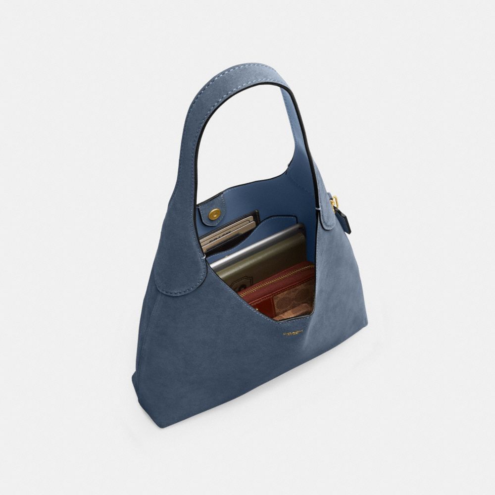 Our Brooklyn is an elegant, minimalist silhouette—with a distinctly New York attitude. The small-sized hobo style is crafted of durable, luxuriously soft double-faced suede. Featuring a spacious interior with a snap pocket for access to essentials, the streamlined 28 has a comfortable, wide shoulder strap and an easy magnetic snap closure.