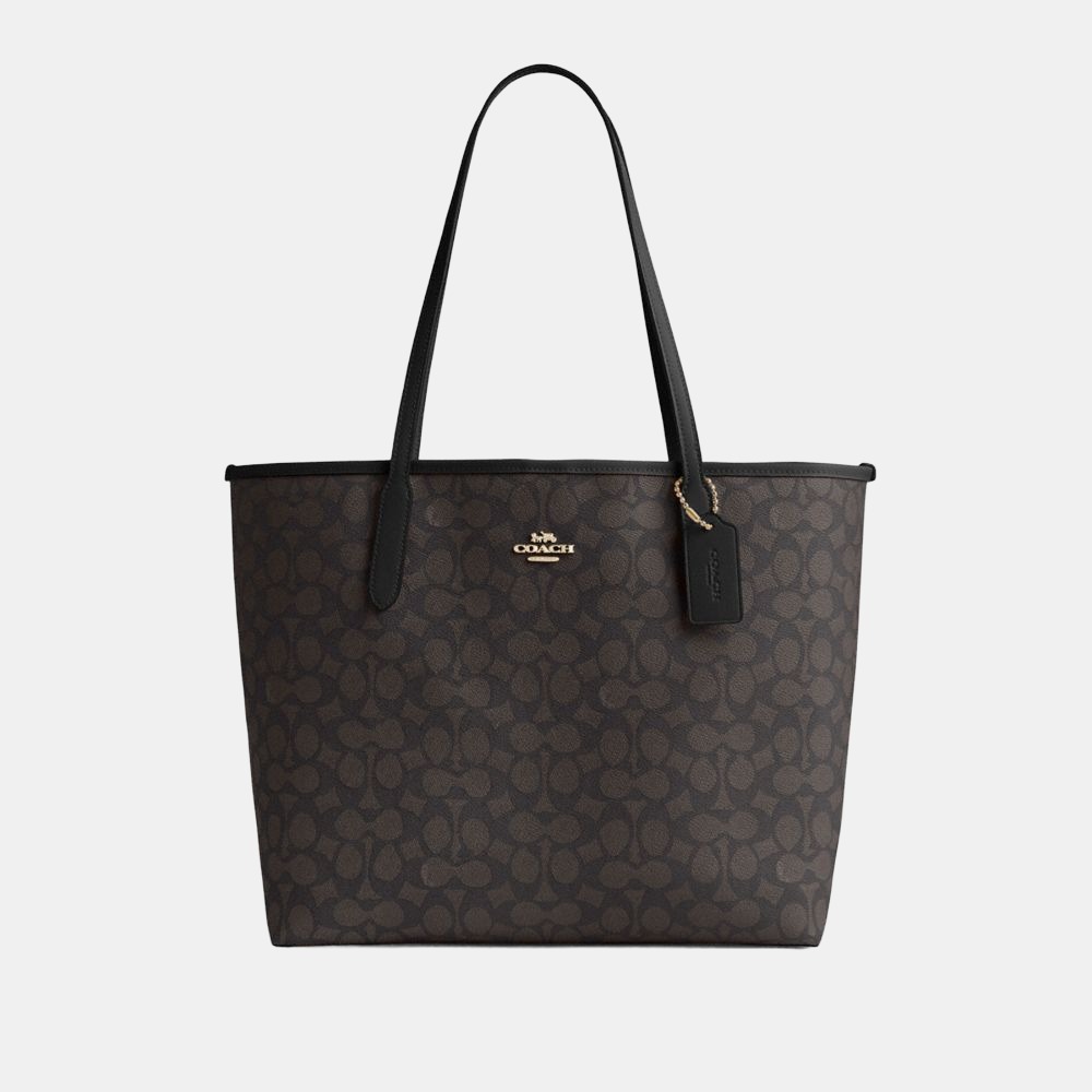 Coach City Tote Bag In Signature Canvas – Gold/Walnut/Black