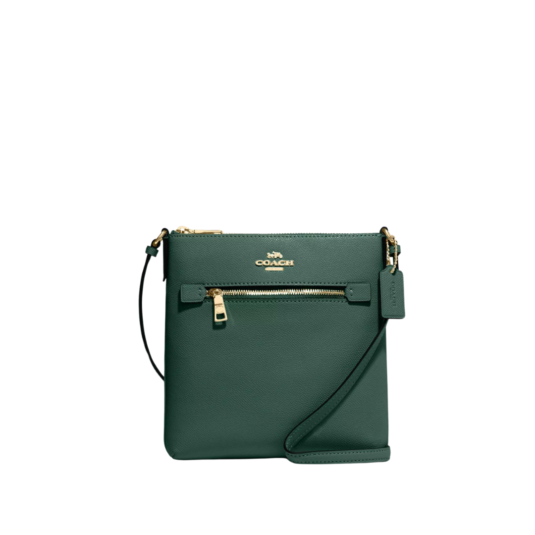 Crossgrain leather . Fabric lining. Adjustable strap with 22″ drop for shoulder or crossbody wear