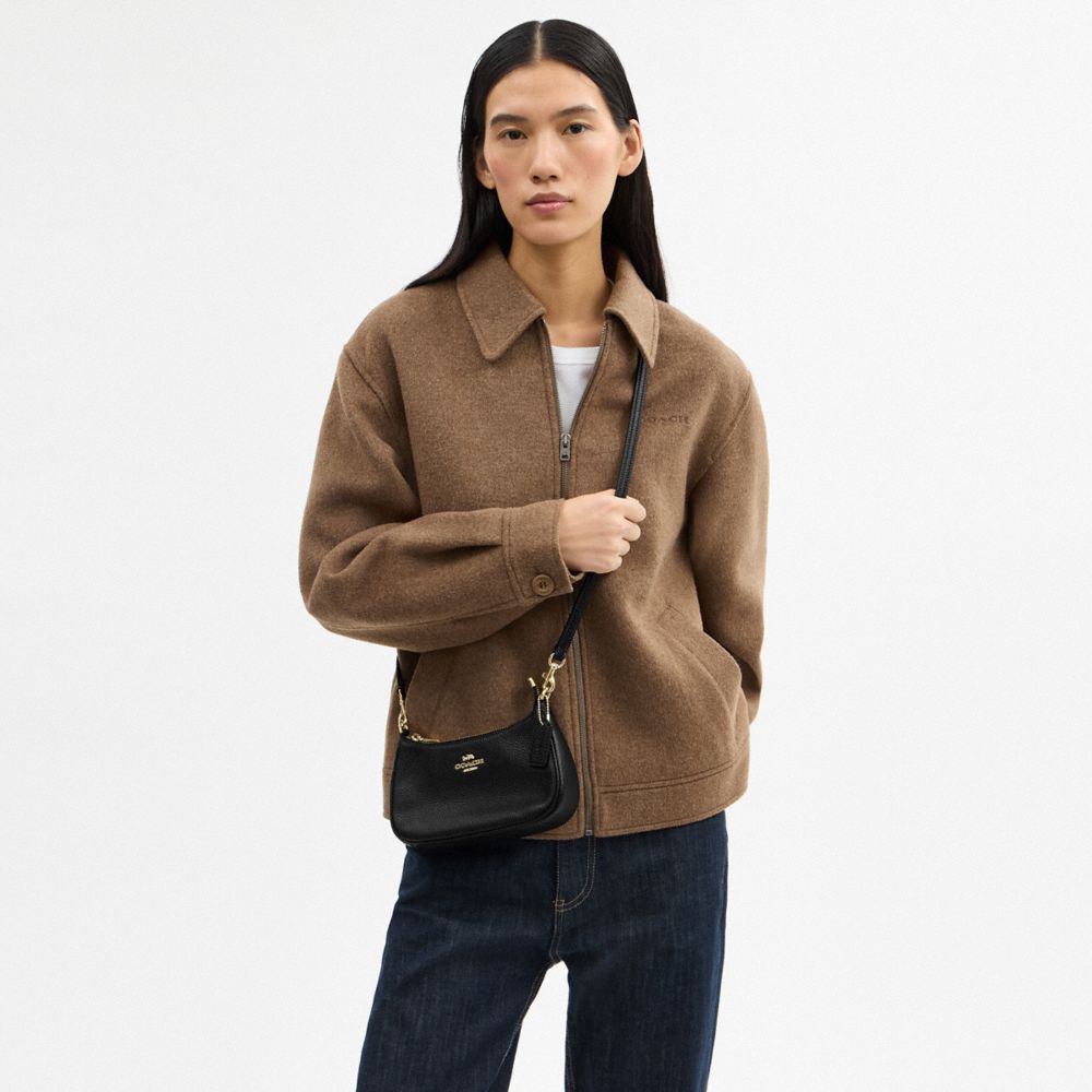 • Detachable long strap with 22 1/2″ drop for shoulder or crossbody wear