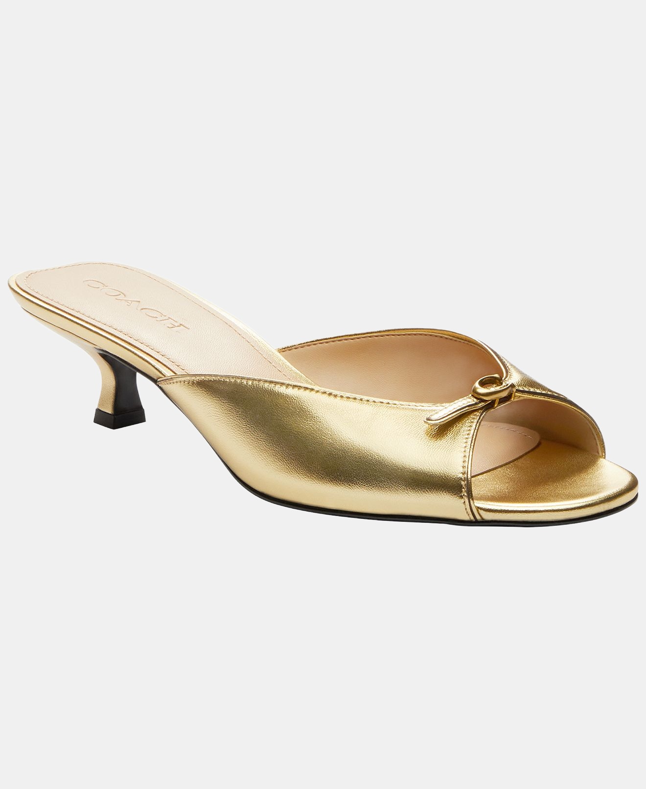 Glide through events with confidence wearing these COACH dress sandals, featuring a kitten heel that provides a gentle lift without putting pressure on your feet. The rounded toe offers comfortable space, while the single sole supports stable steps.