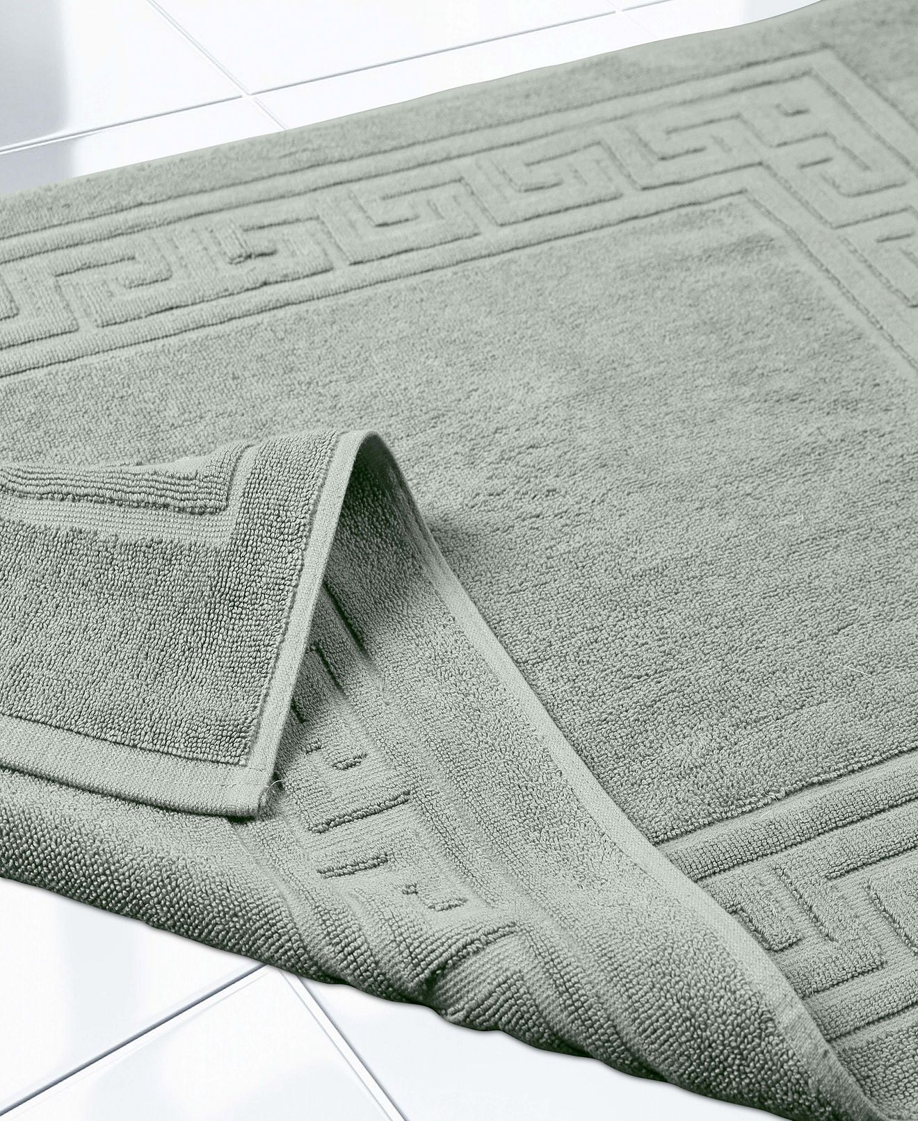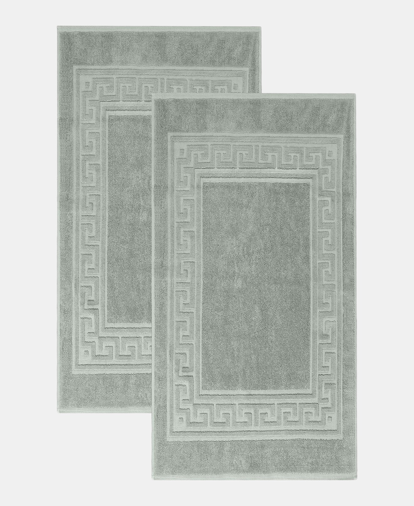 Elevate the look of your bathroom or powder room with the cotton Greek key border 2 piece bath mat set. Crafted from durable cotton, our most opulent bath mats feel extremely plush underfoot. This machine washable set features a woven terry surface on both sides giving it enhanced comfort and absorbency. Perfect for everyday use, enjoy cloud-like comfort every time you step out of your shower or bath. Showcasing a traditional Greek key border, add classic elegance to your bathroom style with this luxurious set. This bath mat set does not contain any harmful substances or chemicals, ensuring quality, comfort, and wellness.