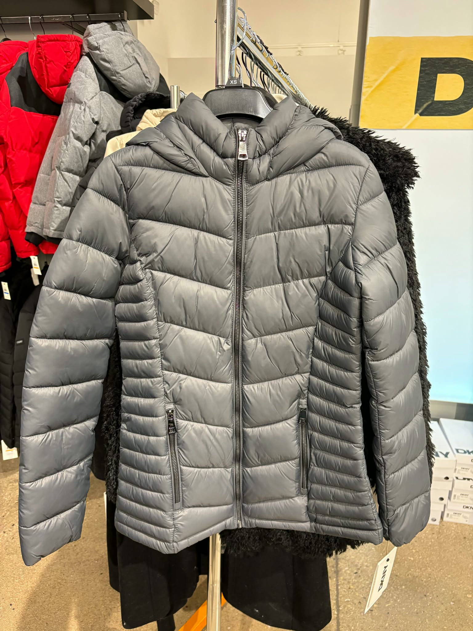 DKNY Hooded Puffer Jacket – Gray – Size XL