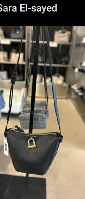 DKNY Pebbled Leather Crossbody Bag with Lock Detail – Black