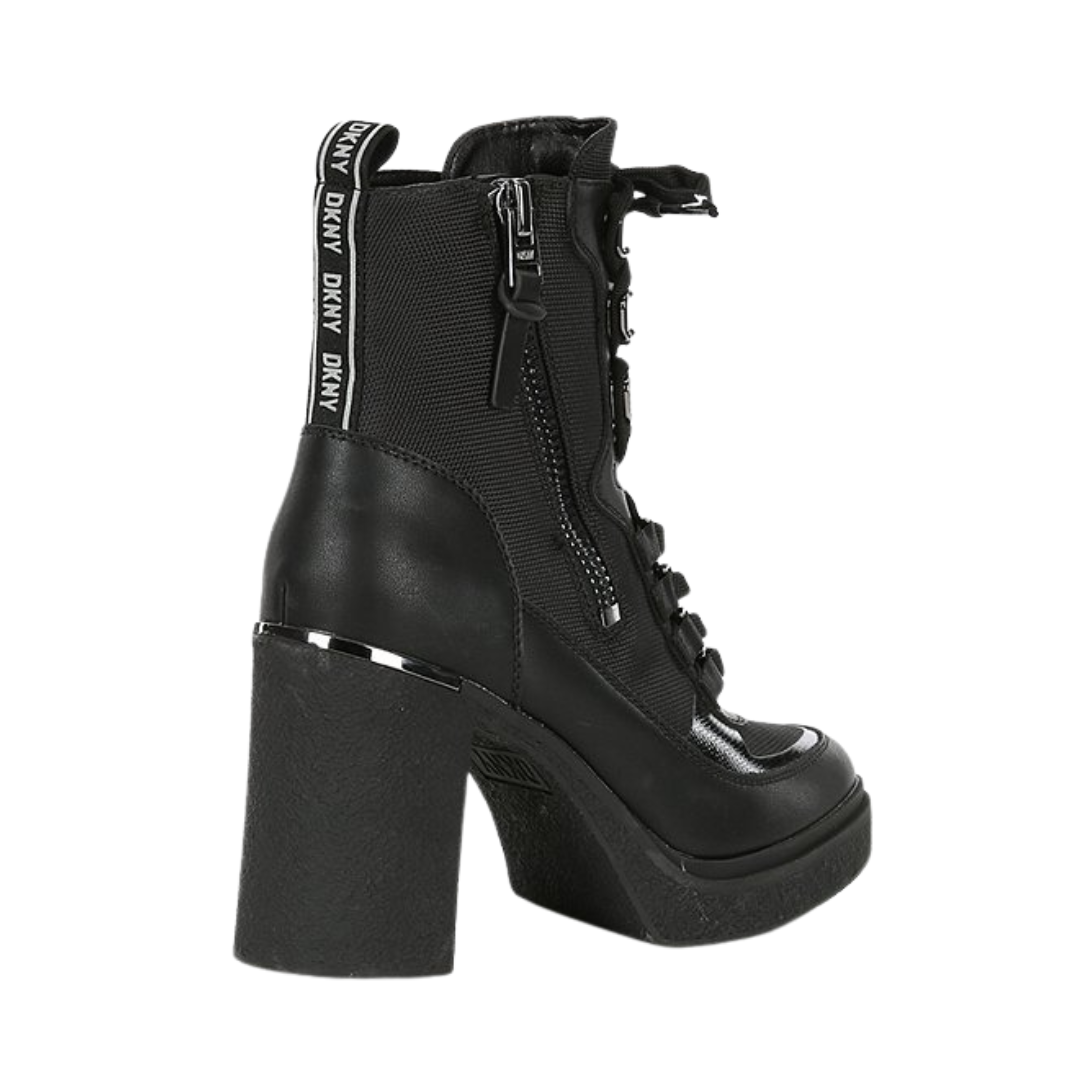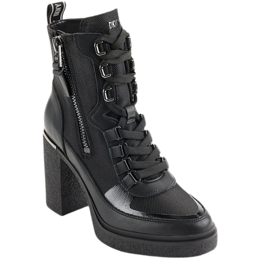 From DKNY, the Toia Leather Lace-Up Platform Booties feature