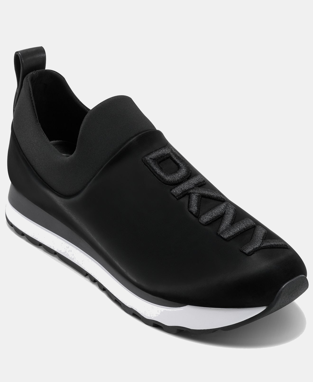 DKNY’s Women’s Jadyn Slip-On Sneakers feature a touch of glittering shine with the brand’s logo, combining a stylish look with a comfortable design. They are an effortless addition for both active schedules and casual time at home.