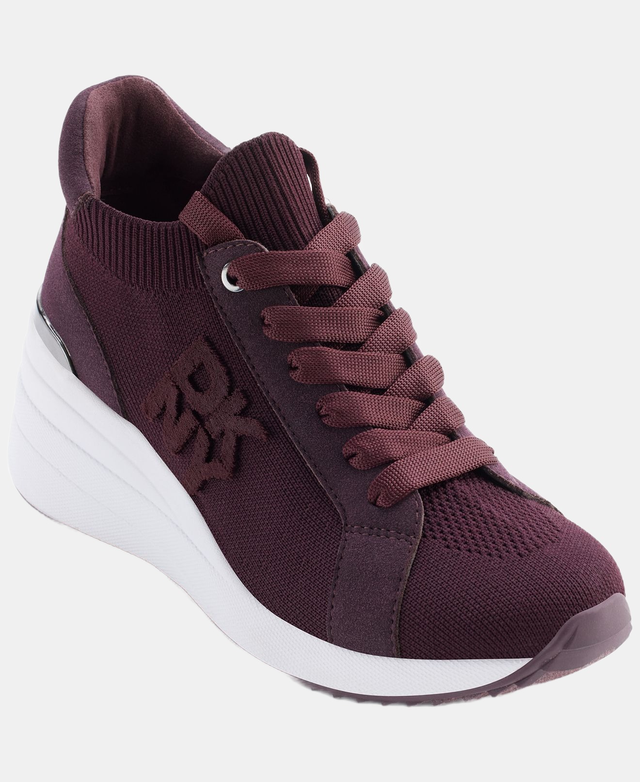 DKNY Women’s wedge heel adds plenty of lift to an essential lace-up sneaker embellished with tonal logo lettering.