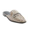 A smart apron toe and edgy zipper strap distinguishes the silhouette of a timeless loafer emboldened by a monogram print and elevated by a minimal stacked heel.