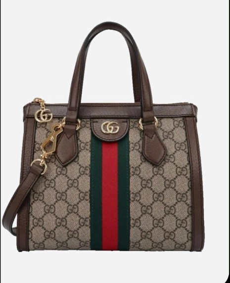 Gucci GG Supreme Small Tote Bag – Beige/Brown with Red/Green Stripe