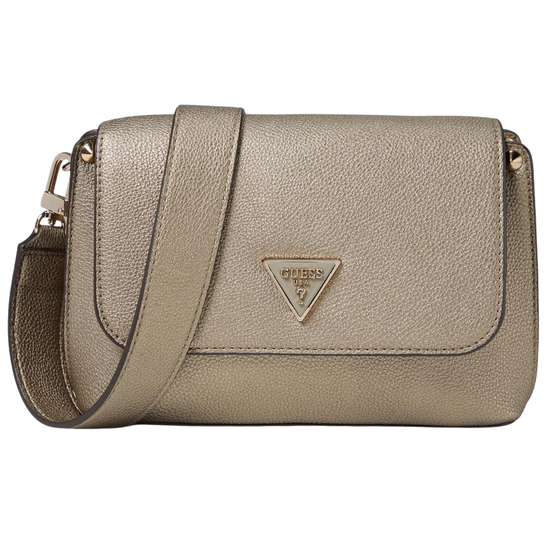 Add glamorous shine to your outfit in the sophisticated company of GUESS Meridian Flap Shoulder Bag. Featuring a sheeny exterior look, it has double-faced pebble PU construction with magnetic snap closure and an adjustable shoulder strap.