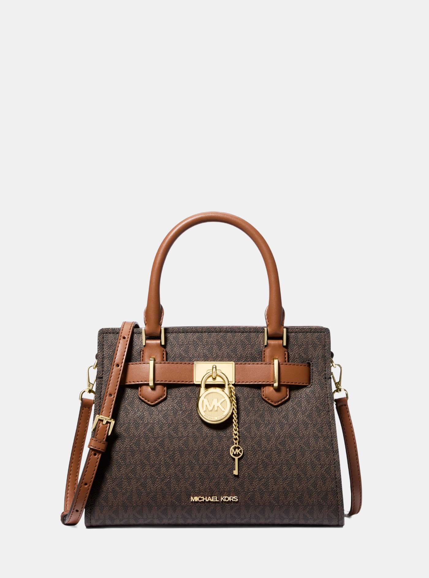 Crafted from Signature-print canvas with smooth trim, this updated take on the iconic Hamilton satchel features a belted silhouette accented with a polished padlock charm. Complete with a crossbody strap and an organized interior, it’s the statement bag your closet is craving.