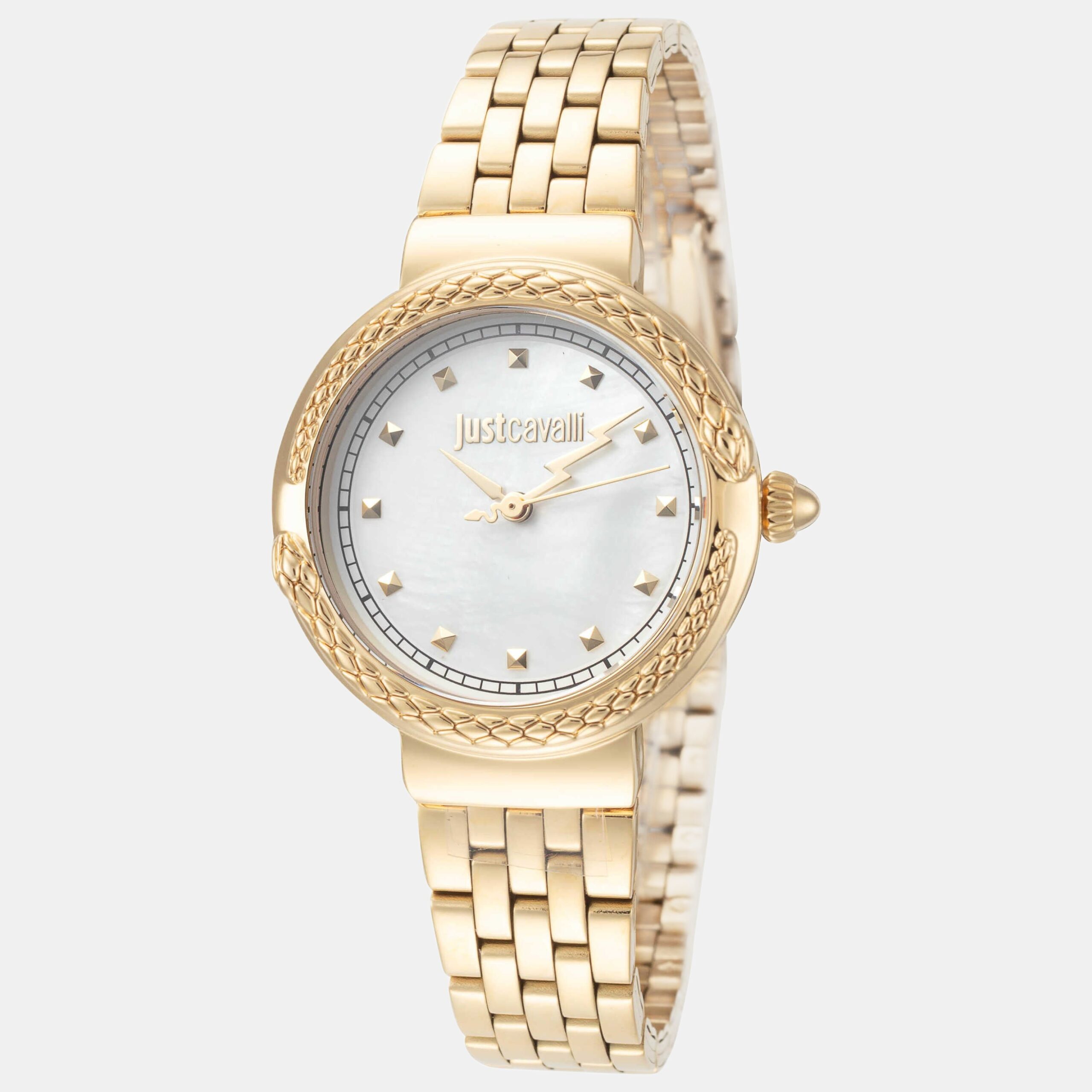 Crafted for the contemporary woman, the Just Cavalli SET collection presents a quartz-powered timepiece that radiates sophistication. Encased in gold tone stainless steel with a 30mm round profile and mineral crystal, this watch combines durability with a sleek aesthetic. Its white dial and gold stainless steel bracelet with a deployment clasp underscore a design that’s as functional as it is stylish—perfect for both everyday wear and special occasions. JC1L311M0025