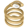 Discover the feminine elegance of the Just Cavalli Signature Snake watch, a captivating piece for the fashion-forward woman. This Japanese-made quartz movement timepiece has a round gold-tone stainless steel case, measuring 22mm, encapsulating a champagne-colored dial. Protected under a mineral crystal, it offers a water resistance of 30m, promising durability. This stunning accessory is beautifully finished with a gold stainless steel bracelet, ensuring a comfortable fit with a deployment clasp. A splendid addition to any ensemble. JC1L271M0025