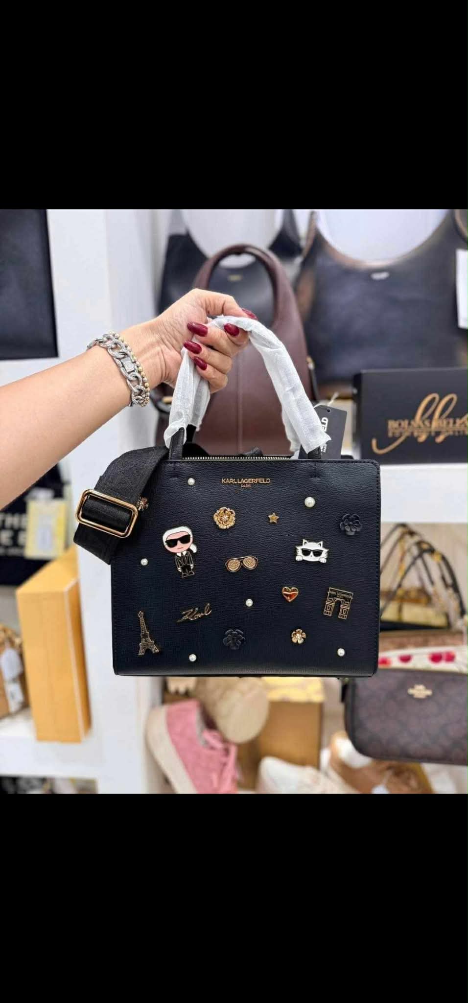 Karl Lagerfeld Paris Embellished Black Tote Bag – Black