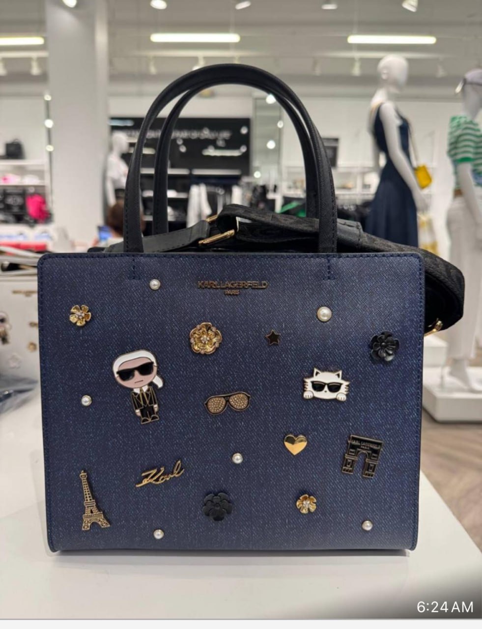 Karl Lagerfeld Paris Embellished Denim Tote Bag – Navy Blue