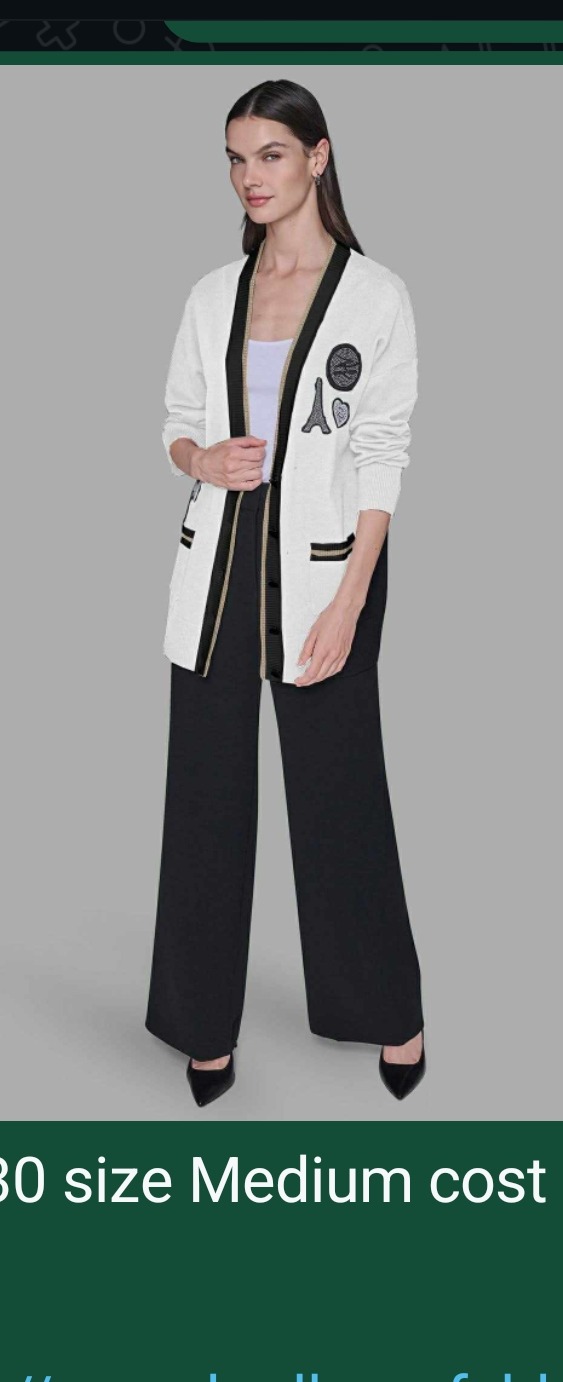 Karl Lagerfeld Paris Long Cardigan with Patches – White with Black Trim – Size Medium
