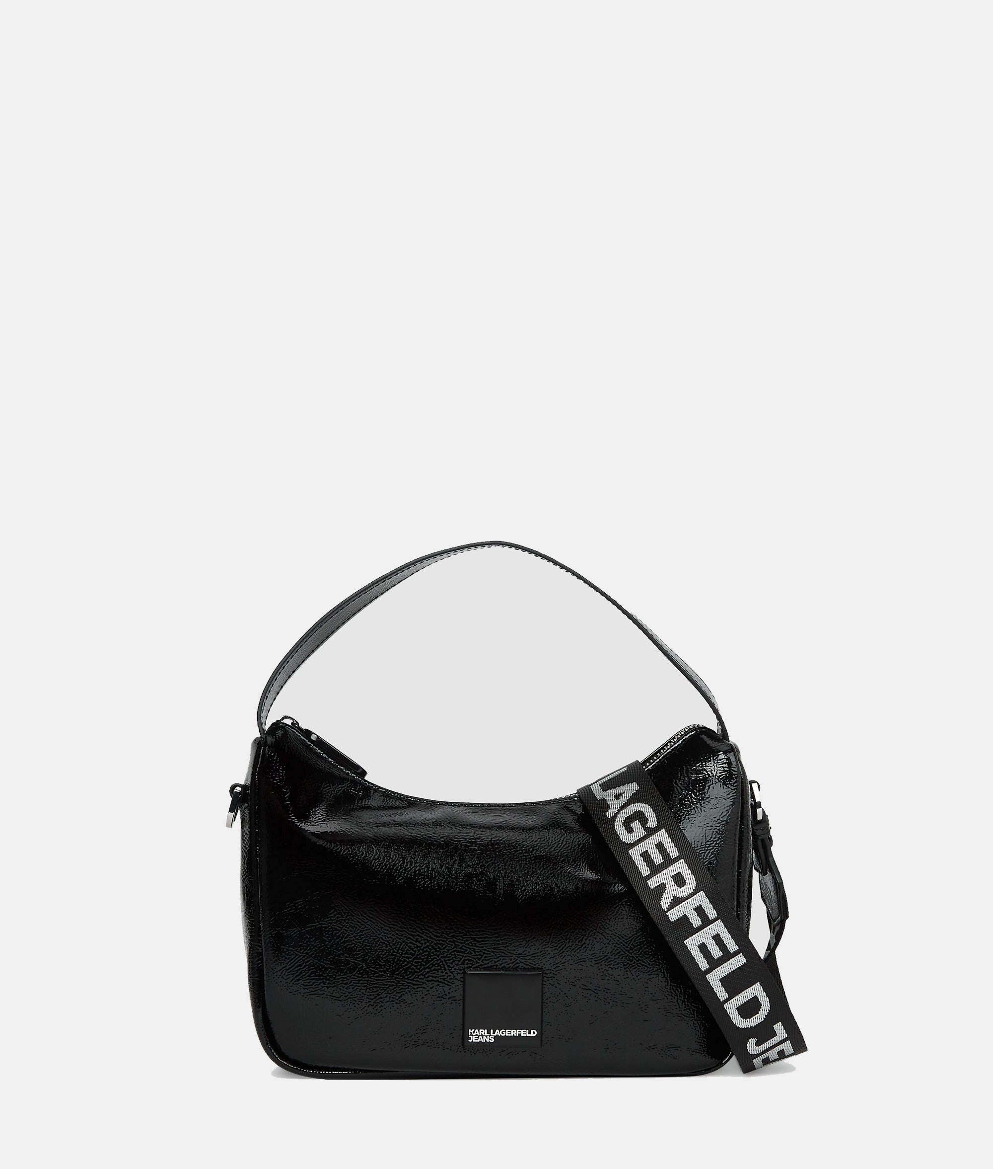 Elegant with urban edge, this mini hobo bag pairs a glossy finish with KARL LAGERFELD JEANS hardware. A top handle and secure zip-top closure complete the statement piece.