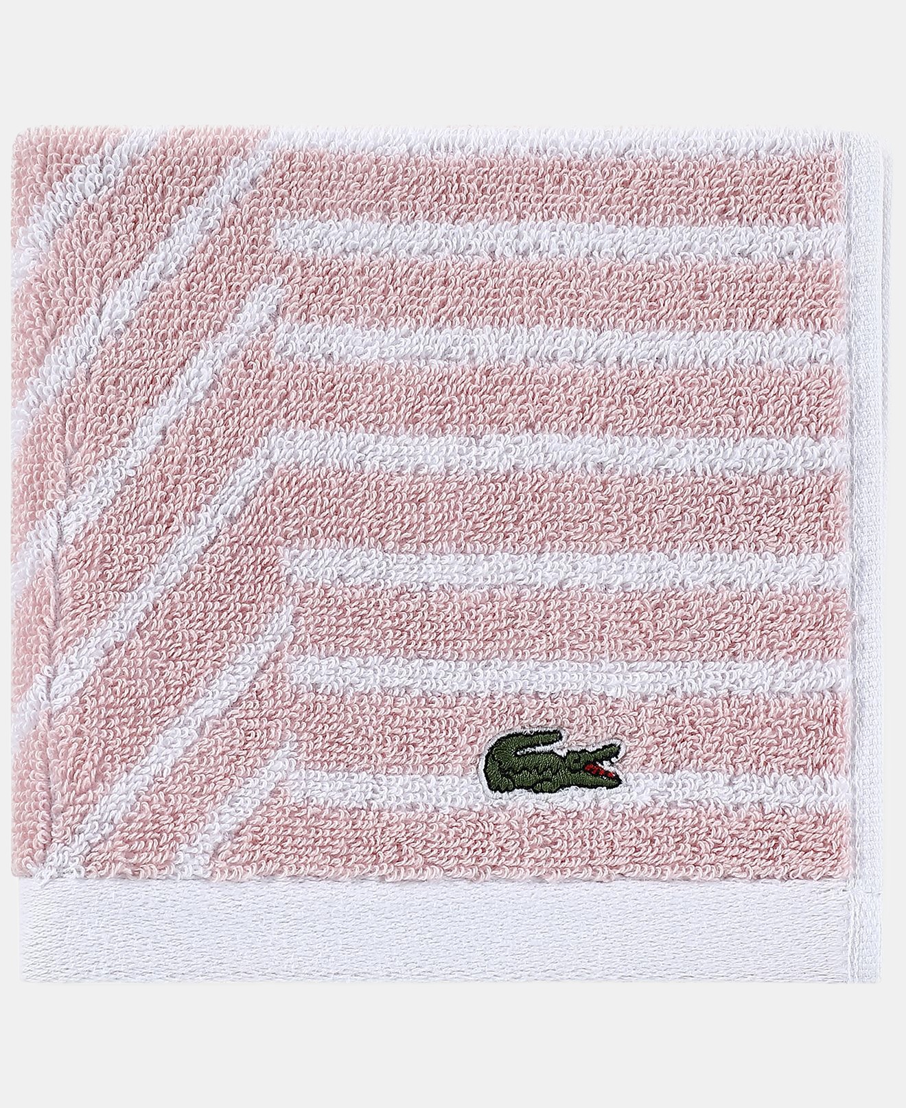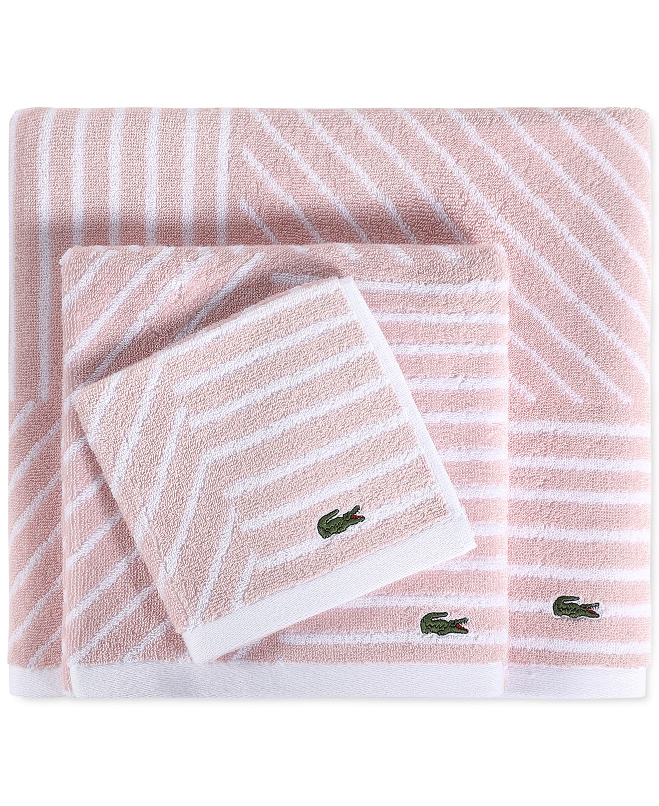 Add fresh color and modern graphic appeal to your bathroom with the Guethary bath towel from Lacoste, featuring a playful pattern that reverses to an inverted color scheme.