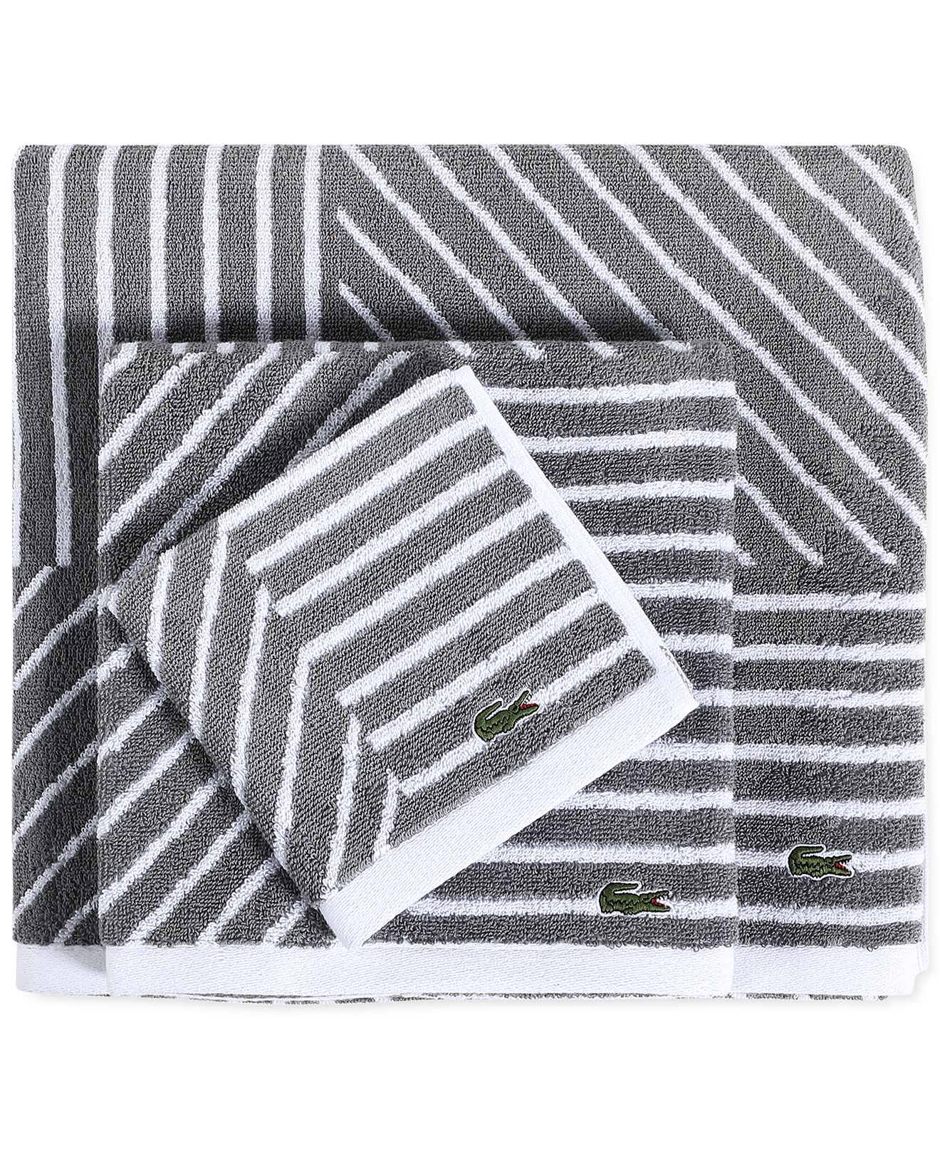Add fresh color and modern graphic appeal to your bathroom with the Guethary bath towel from Lacoste, featuring a playful pattern that reverses to an inverted color scheme.