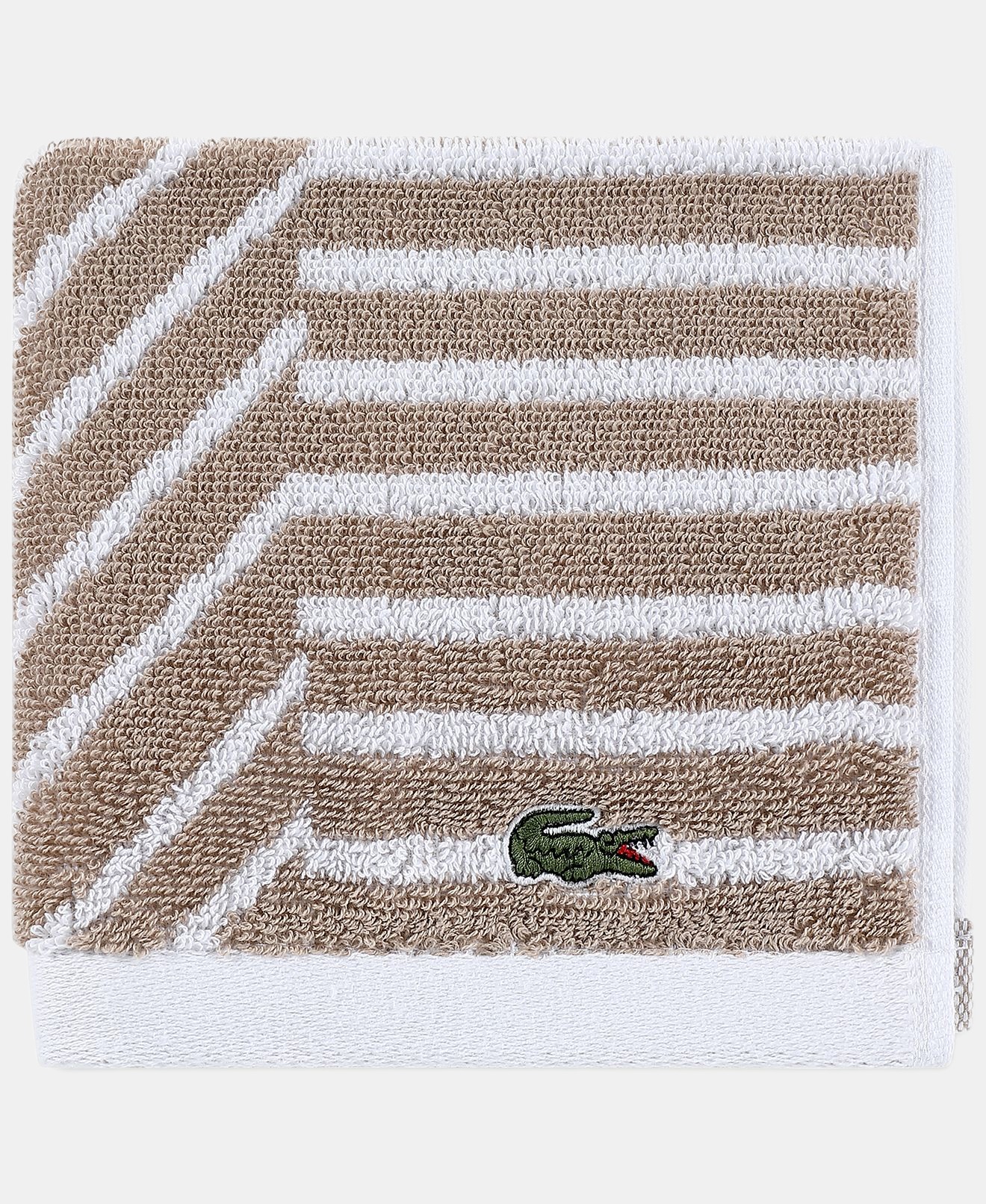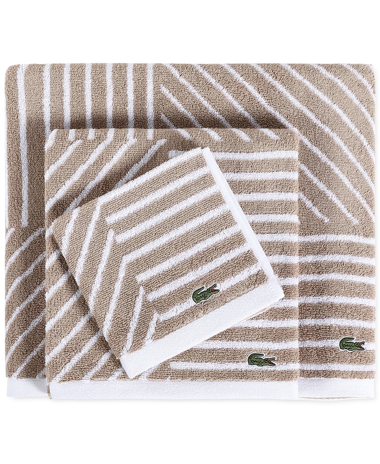 Add fresh color and modern graphic appeal to your bathroom with the Guethary bath towel from Lacoste, featuring a playful pattern that reverses to an inverted color scheme.