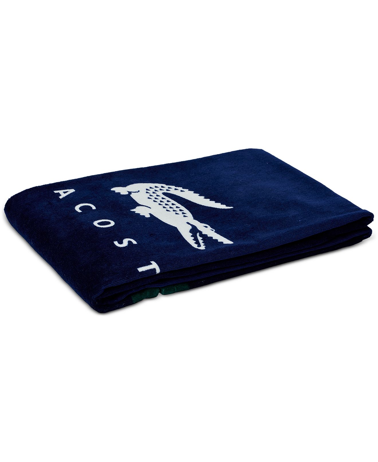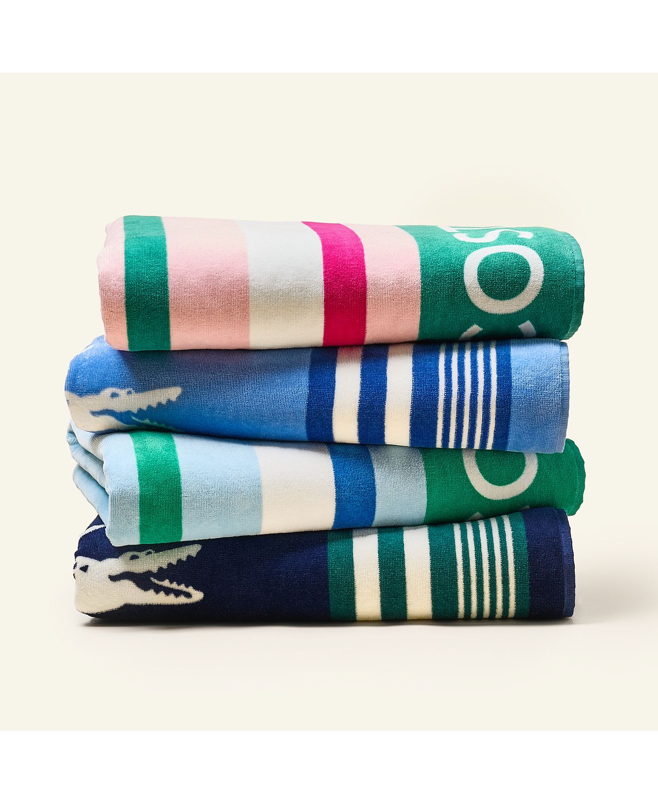 Add a clean and classic look to vacations and warm weather adventures with the Lacoste Oki beach towel, featuring a sophisticated striped design. Printed on 100% cotton velour with a terry loop reverse, the towel combines fashion and function for effortless style whether used at the beach, spa or pool.