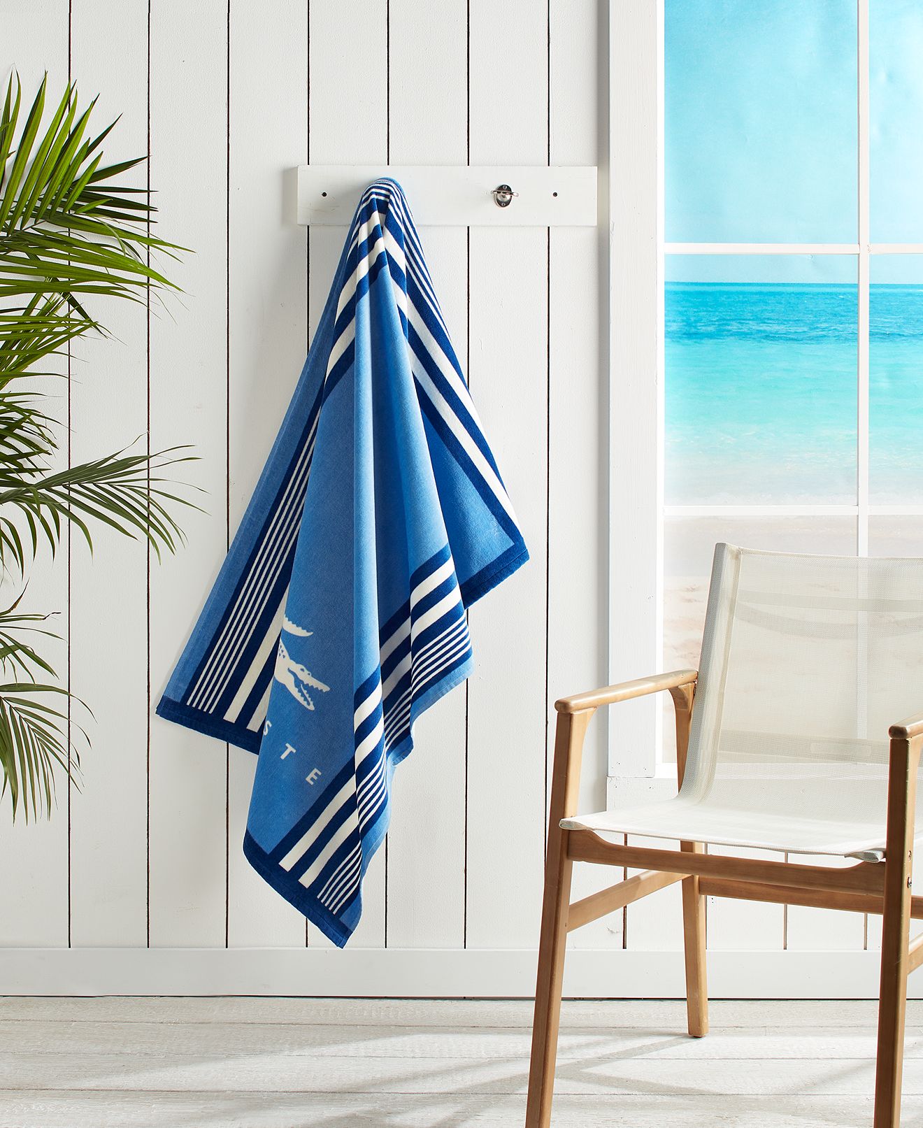 Super-soft cotton and stylish stripes make this Oki towel from Lacoste the perfect choice for the beach and beyond.