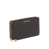 A slim leather wallet includes card, coin, and cash pockets to keep your essentials organized.