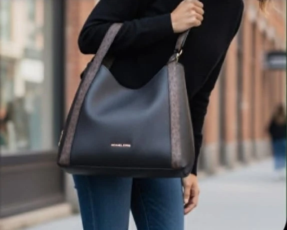 Michael Kors Hobo Shoulder Bag – Black with Brown Trim