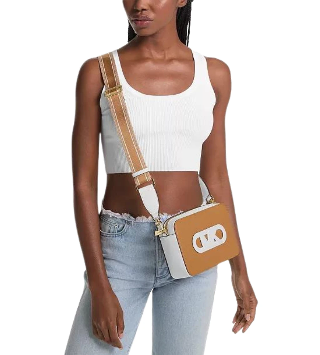 Contrasting stripes and logos add a sporty sensibility to this compact camera bag, while a webbed crossbody strap strikes a utilitarian note. From MICHAEL Michael Kors.