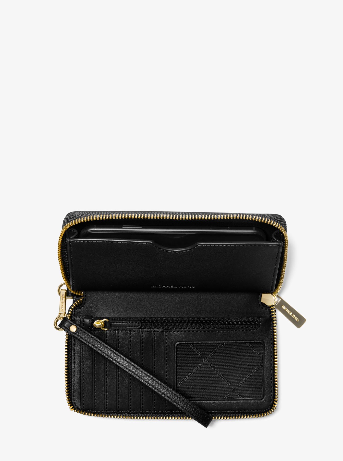 Traveling light just got easier with our latest Mercer smartphone wristlet. Crafted from pebbled leather, this chic accessory features a detachable strap, zip-around closure and gilded hardware for a luxe finish. We love how it’s sizable interior will safely hold your phone, cards and cash.