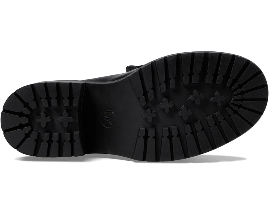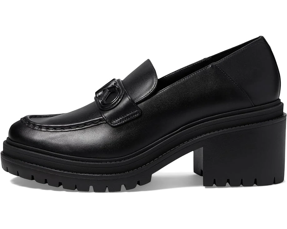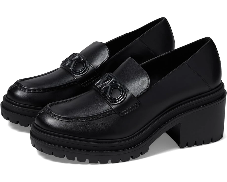 Elevate the style statement by pairing the subtle and sophisticated MICHAEL Michael Kors® Rocco Heeled Loafer with your best outfits. The slip-on style loafers feature a round-toe shape and chunky block heels. These come with a leather upper, synthetic lining, and comfortable synthetic insole.