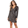 Sequin mini dress. Surplice neckline. Allover sequin fabrication.