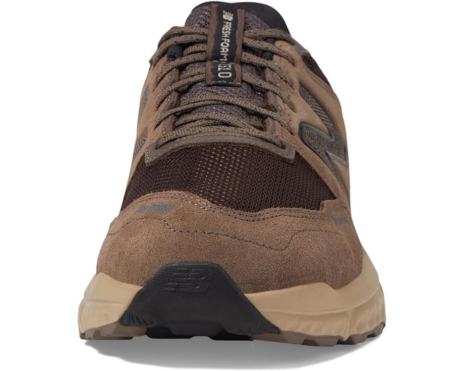 The New Balance Fresh Foam T510v6 H2O Resist sneakers are designed to keep you comfortable and protected during your outdoor adventures. With its sturdy leather and fabric upper, it offers a combination of durability and breathability. The textile lining and insole ensure a plush feel, while the Toe Protect technology safeguards your toes from unforeseen obstacles. The Fresh Foam midsole cushioning adds an extra layer of comfort, making every step feel like a breeze.