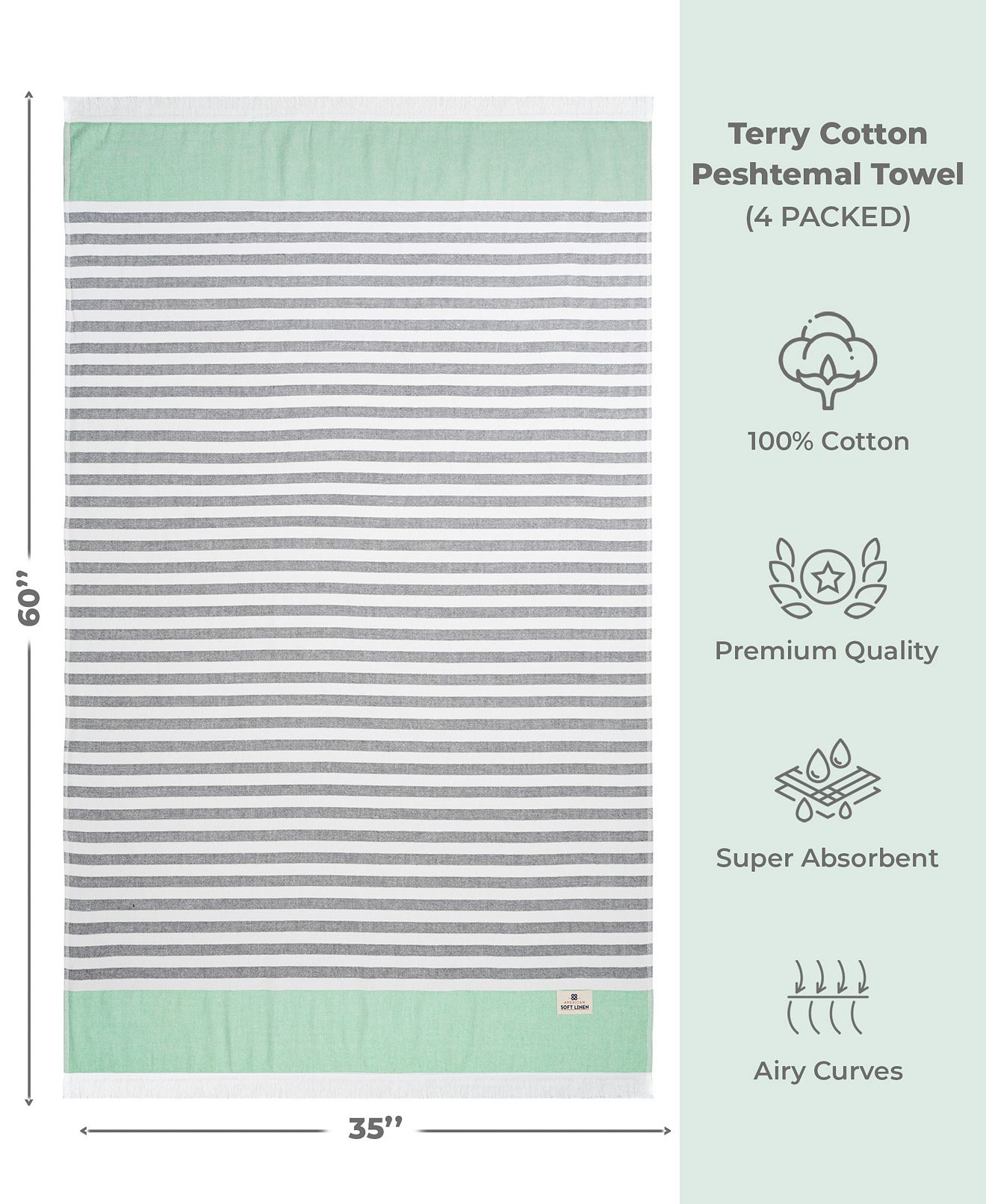 Peshtemal 100% Turkish Cotton 4-Pack Beach Towels, 35″ x 60″ – Green