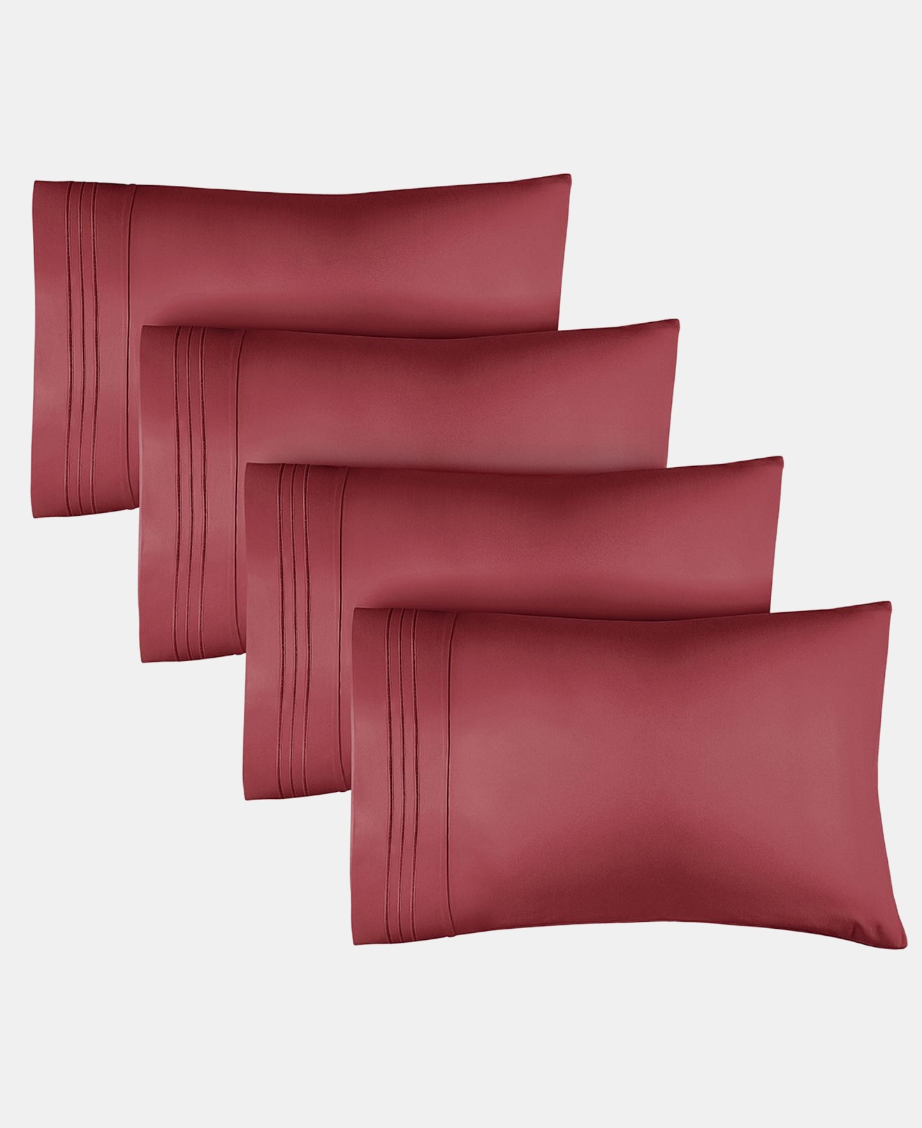 Pillowcase Set of 4 Soft Double Brushed Microfiber – Queen – Burgundy