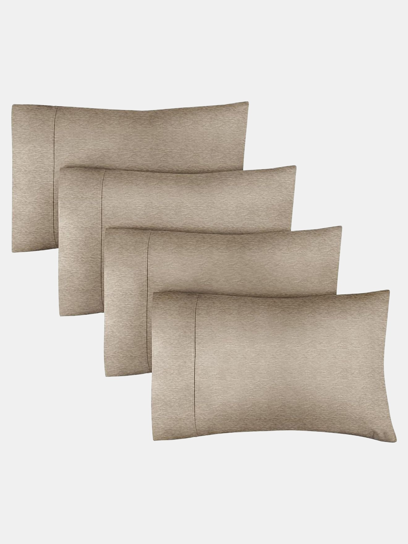 Pillowcase Set of 4 Soft Double Brushed Microfiber – Queen – Heathered beige