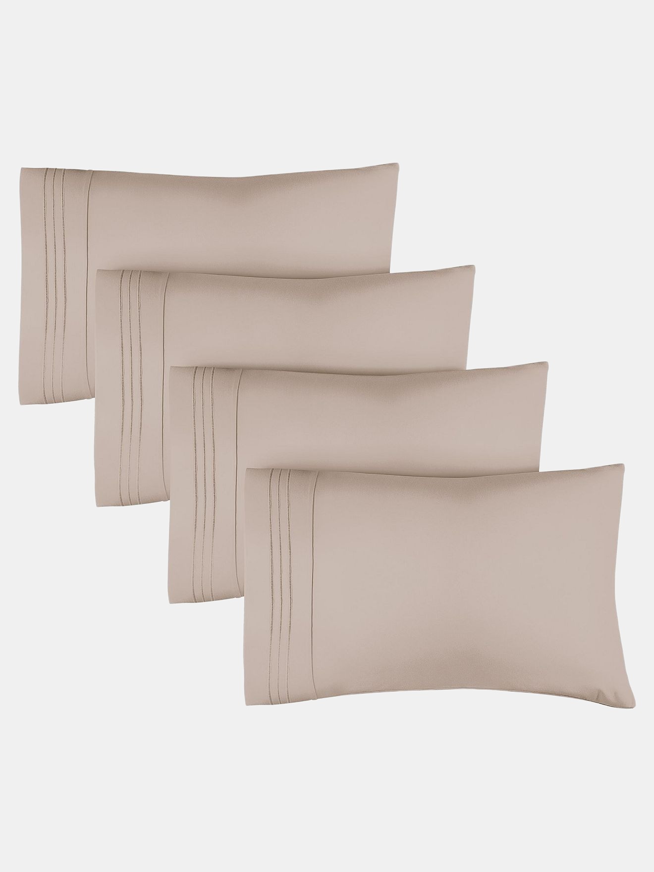 Pillowcase Set of 4 Soft Double Brushed Microfiber – Queen – Wheat