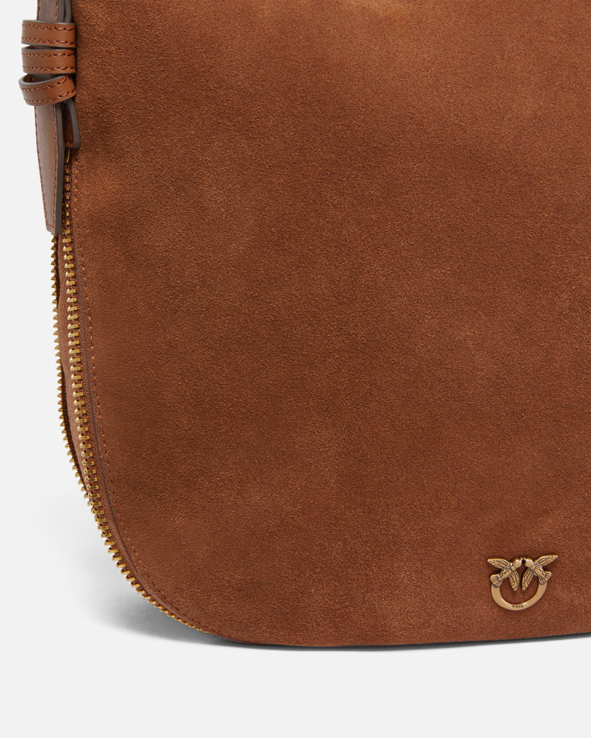 Medium hobo bag in soft suede that comes with a functional zip-around design and with a cotton lining. Featuring an adjustable leather shoulder strap so it can be carried by hand or on the shoulder, the bag is extremely versatile and practical. Understated and refined, the design is complemented by the Love Birds logo, which embodies the inimitable style of the PINKO. Activate your PINKO bag: verify the authenticity of your product and access a personalised experience by scanning the Love Birds embroidery on the back of the bag with your smartphone!
