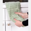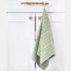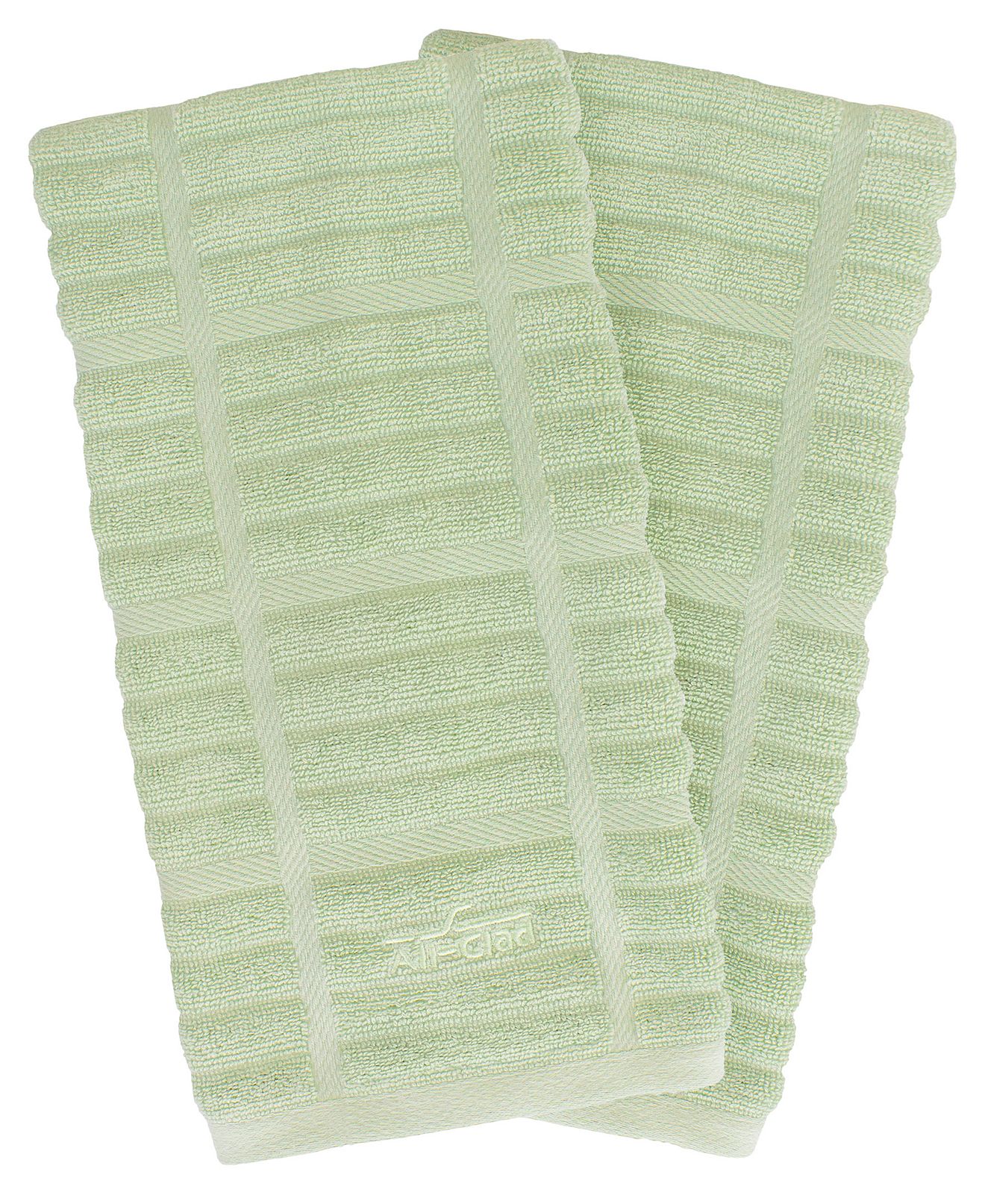 A dutiful assistant throughout the home, All-Clad solid kitchen towels 2-pack are designed for maximum absorbency and durability, making them ideal counterparts for kitchen tasks both big and small. This 100 percent cotton kitchen towel has been treated with an microbial-resistant agent to inhibit the growth of bacterial odors to extend the useful life of the towel by controlling deterioration caused by mildew. A unique yarn-dyed, “wave” terry loop and soft, pre-washed Turkish combed cotton construction allow for extra reach into corners and crevices of cookware, dishes, and glasses when drying. The All-Clad solid kitchen towel is 25 percent larger than the average kitchen towel, making it the perfect choice to pull double duty as a drying mat for larger kitchen items.