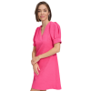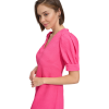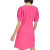 Raised flowers sweeten a textured jacquard shift dress framed by pretty puff sleeves for contemporary style.