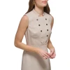 Evoke polished style in a sleeveless A-line dress fashioned with a band collar and gleaming front buttons.