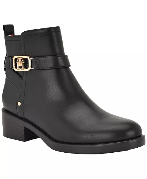 Tommy Hilfiger Ivaide Logo-Strap Block-Heel Booties – Black – Size 7US