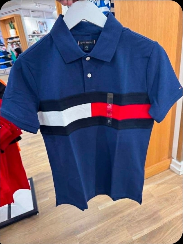 Tommy Hilfiger Polo Shirt with Flag Stripe – Navy Blue – Size 10 years